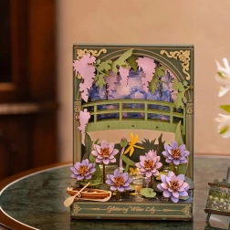 Dompel je onder in de wereld van kunst en ontspanning met ons unieke 3D-model van Sprankelende Waterlelies, geïnspireerd op de beroemde werken van Monet. Na het bouwen toont deze puzzel een magische scène met gedetailleerde bloemen, een bootje en een houten brug die een sfeer van rust en welzijn oproept. De LED-verlichting geeft de decoratie een onmiskenbaar magische sfeer die doet denken aan het spel van licht bij zonsondergang.