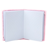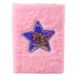 De omslag is gemaakt van een zachte, aangename stof in een intense roze kleur. In het midden zit een transparante applicatie in de vorm van een ster, met binnenin kleurrijke confetti die vrij bewegen bij elke beweging van het notitieboek. Dit detail onderscheidt het product van klassieke notitieboeken.