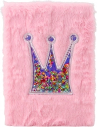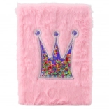 Ga op een creatieve reis met dit charmante roze notitieboek in A5-formaat. Het kan dienen als notitieblok, planner of schoolschrift. In het midden bevindt zich een decoratieve kroon, gevuld met kleurrijke stervormige confetti die je kunt laten bewegen voor een dynamischer visueel effect.
