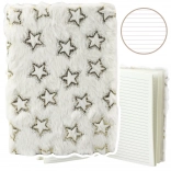 Wij presenteren een notitieboek dat niet alleen praktische doeleinden dient, maar ook charme toevoegt aan je aantekeningen. De omslag is van centro wit pluche met gouden sterren als decoratie, wat een perfect contrast creëert voor een elegante uitstraling. Dit luxueuze schrift is ideaal voor zowel schoolnotities als persoonlijke aantekeningen. Het heeft 80 gelijnde vellen die volop ruimte bieden voor je gedachten en creativiteit.