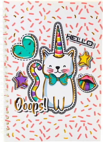 Dit notitieboek met het sprookjesachtige motief van een eenhoornkat is geschikt voor zowel op school als voor thuis schrijven of als kinderdagboek. De spiraalbinding maakt het makkelijk om pagina's te openen en comfortabel aan beide kanten te schrijven. Het compacte A5-formaat is ideaal om mee te nemen in een rugzak, tas of lade.
