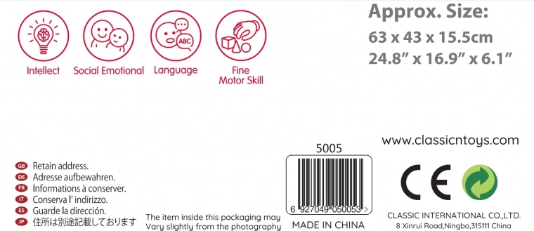Classic World is een gerenommeerd merk dat bekend staat om de kwaliteit en veiligheid van zijn speelgoed. Hoogwaardige productie voldoet aan internationale normen en geeft ouders de zekerheid dat hun kinderen alleen het beste krijgen.