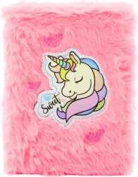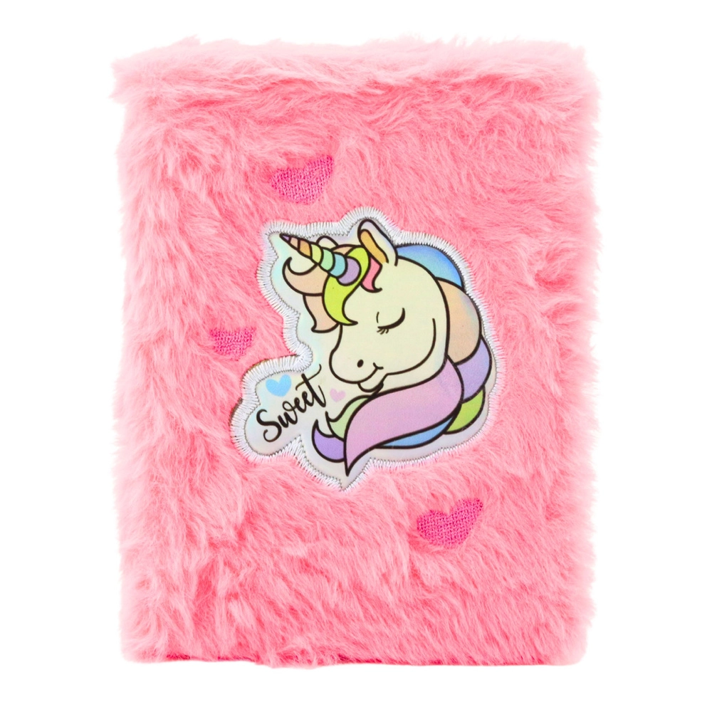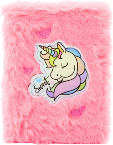 Pluche notitieboek met een schattige eenhoorn op een holografische achtergrond is een uitzonderlijk product dat betovert door zijn uiterlijk en functionaliteit. Roze omslag combineert een zachte stof met een glinsterend holografisch effect, wat een sprookjesachtige indruk wekt.
