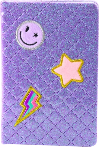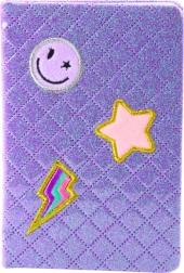 - Gekleurde patches in de vorm van een ster, een glimlachend gezicht en een bliksem geven het notitieboek een moderne uitstraling