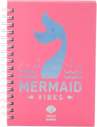 Stijlvol notitieboekje in A6-formaat met een holografische print van een zeemeerminnenstaart. Combineert functionaliteit, modern design en hoge kwaliteit. De roze kaft met glanzend opaalachtig patroon valt op en geeft een uniek karakter.