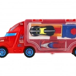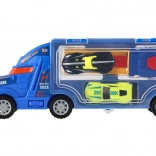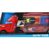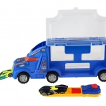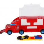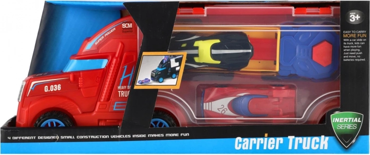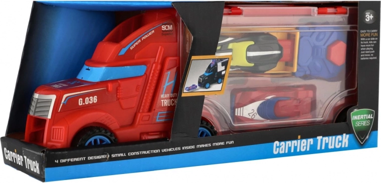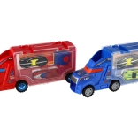 De kunststof vrachtwagen-transporteur brengt kinderen volop actie en orde – in de transparante box nemen ze twee mini-autootjes en accessoires mee, en dankzij de kantelbare laadklep laden en lossen ze eenvoudig. Freewheel zorgt voor soepel rijden zonder batterijen en voor gemakkelijke bediening.