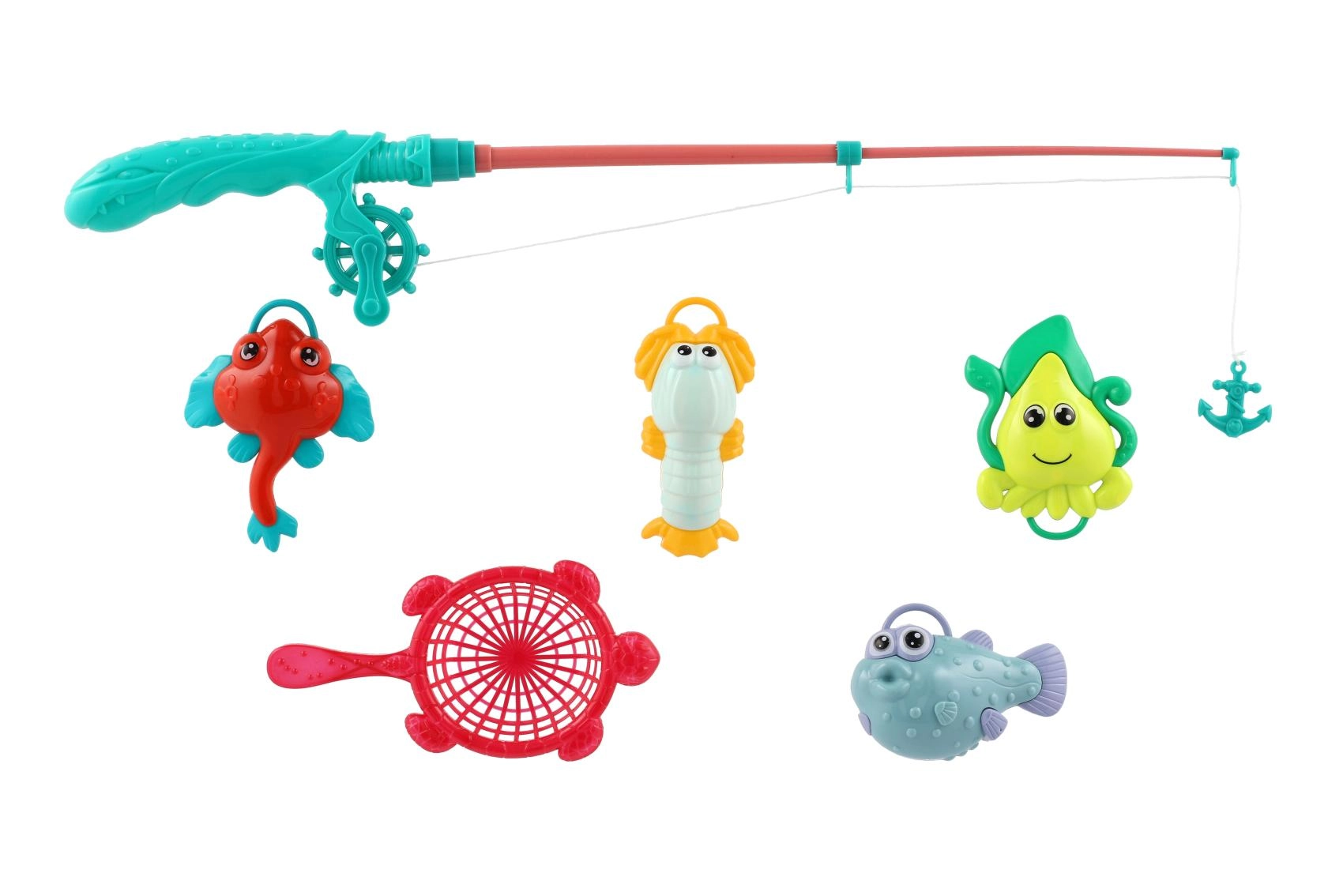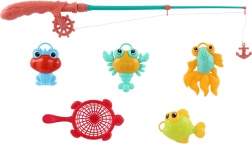 Word een kleine visser en beleef uren waterpret! Deze leuke set bevat een kunststof hengel en kleurrijke zeediertjes die je kunt vangen met een haakje of schepnet. Stimuleert de geduld, reactievermogen en fijne motoriek van kinderen. Ideaal voor in het bad, het opblaasbadje en ook voor spel op het droge.