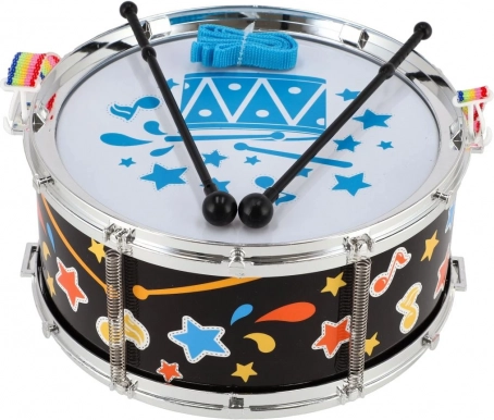 Start je eigen muzikale show! Dit kleurrijke kunststof trommeltje met praktische draagriem en stokjes is ideaal voor kleine muziekliefhebbers. Kinderen kunnen altijd en overal trommelen – het spel... Meer tonen
