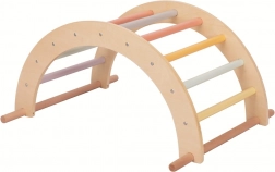 De Pikler-set van 2Kids Toys omvat een driehoek, plank en boog, die samen een eindeloos aantal mogelijkheden bieden voor kinderlijk bewegingsspel. De driehoek en de boog dienen als klimrek, waarbij de boog met een simpele draai verandert in een leuke schommel. De plank kan fungeren als brug tussen beide elementen of, dankzij de bevestigde grepen, als een eerste trainings-klimwand.