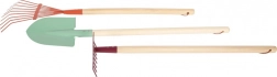 Met deze vierdelige tuingereedschapsset “Tiny Garden” en het stijlvolle gietertje kun je meteen aan de slag – in de tuin, de zandbak of op het strand! De set bevat een hark, een schep, een bladhark en een gietertje met praktische sproeikop. Het gereedschap is gemaakt van duurzame materialen en heeft het ideale formaat voor kinderhanden. Klaar met het werk? Dankzij de lusjes aan het uiteinde van de steel hang je alles eenvoudig op en is het netjes opgeruimd.
