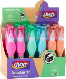 De snel drogende witte vloeistof dekt inkt en balpen moeiteloos. De inhoud van 7 ml zorgt voor een lange gebruiksduur en efficiënte dekking. Verpakking bevat 24 stuks, kleur willekeurig gekozen.