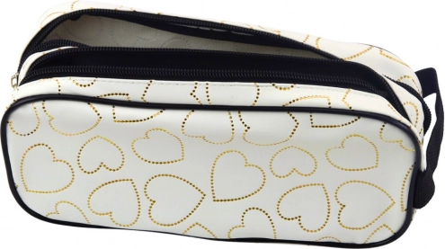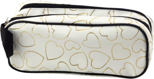 Deze witte etui met gouden hartjes biedt uitstekende organisatie dankzij twee gescheiden compartimenten voor het opbergen van je schrijfbenodigdheden. Je kunt er eenvoudig niet alleen pennen en potloden in kwijt, maar ook linialen, gummen en markeerstiften. Afzonderlijke compartimenten zorgen voor beter overzicht en orde.