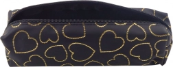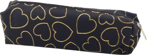 Stijlvolle en praktische etui in het zwart met gouden hartjes, ideaal voor school, universiteit of kantoor. Het compacte formaat en lichte ontwerp maken het gemakkelijk om benodigde schrijfwaren op te bergen.