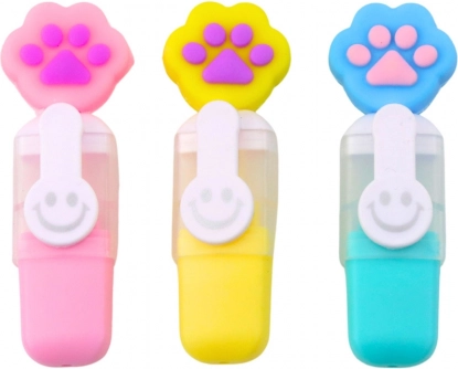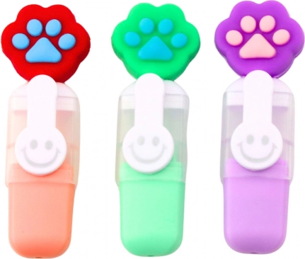 Deze set mini-markeerstiften met een schattig pootje biedt de perfecte combinatie van functionaliteit en stijl voor jonge gebruikers en liefhebbers van kleurrijke kantoorartikelen. De markeerstiften zijn 8 cm lang en hebben een decoratieve clip in de vorm van een gekleurd pootje, waardoor ze niet alleen een praktisch hulpmiddel zijn, maar ook een speelse toevoeging aan de etui.