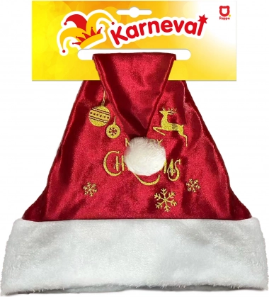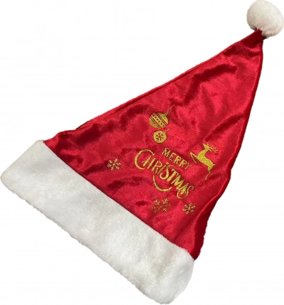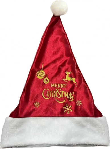 Deze elegante kerstmuts is een geweldige toevoeging voor alle kerstevenementen. De rode basis is verfraaid met een decoratieve gouden opdruk die de aandacht trekt. De witte pompon bovenop geeft de muts een traditionele uitstraling.