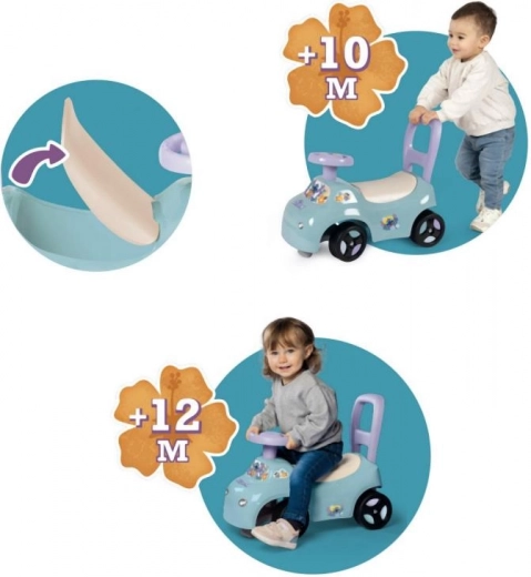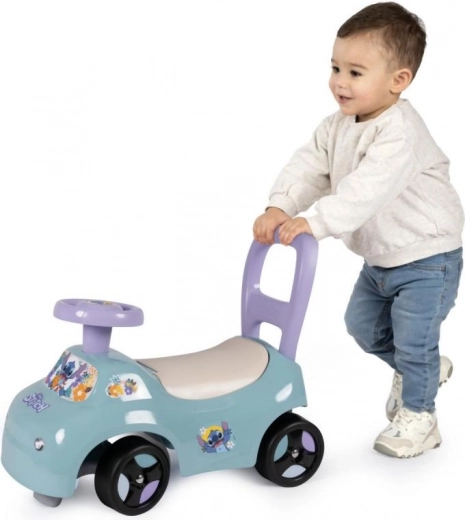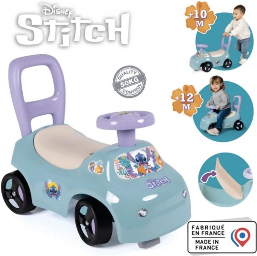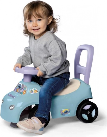 Stabiele loopauto in de vorm van een auto met Stitch-motieven, die werkt als 2-in-1 – loopauto en looptrainer. Een geweldige keuze voor kleine reizigers.
