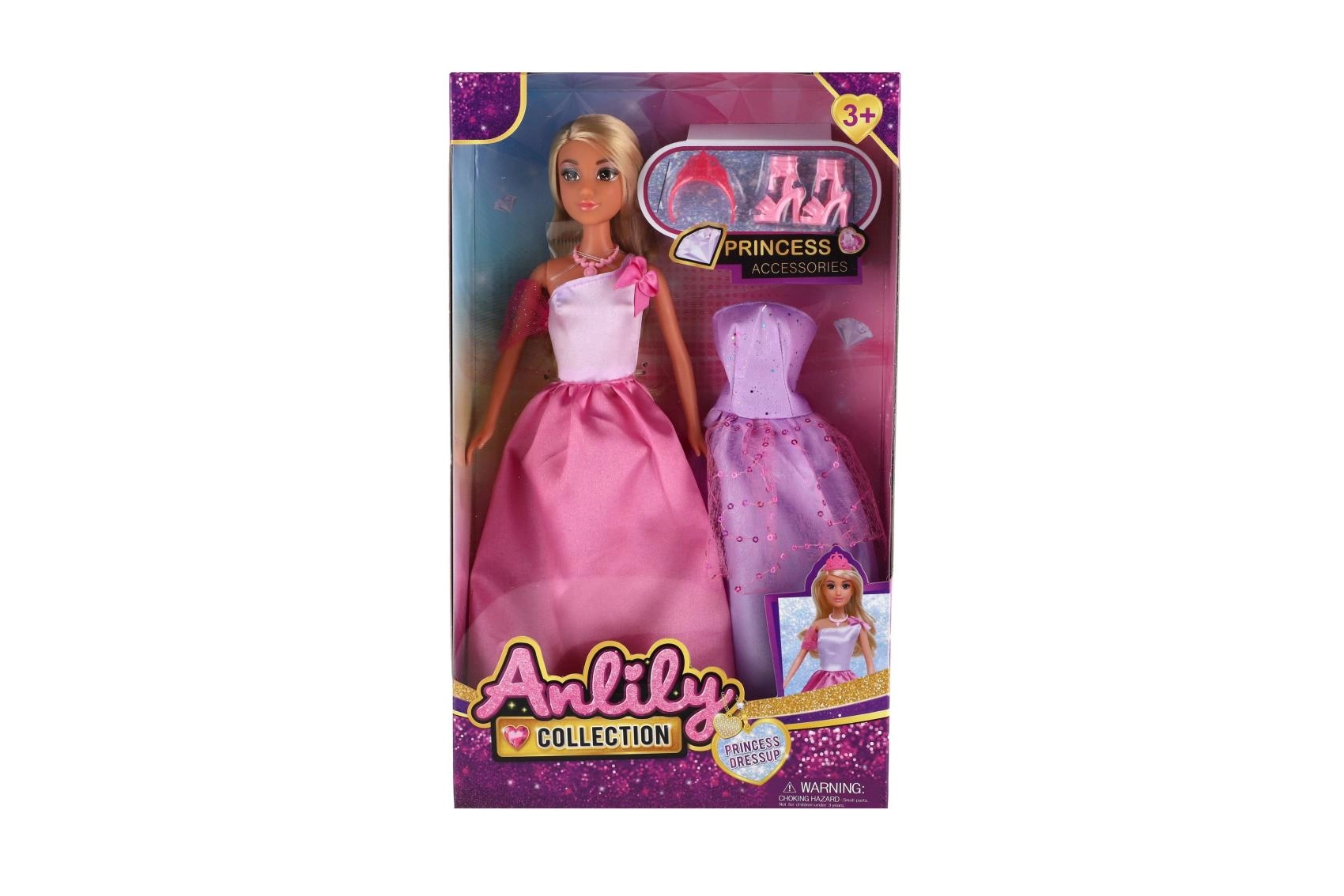 Pop Anlily prinses met reservekleding en accessoires, ideaal speelgoed voor kinderen vanaf 3 jaar.
