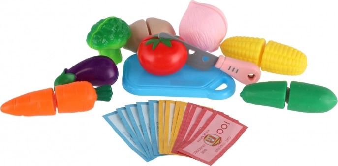 Speel kokje met deze kleurrijke set snijgroenten! Ideaal voor jonge kinderen die volwassenen willen nadoen en hun fijne motoriek willen ontwikkelen.