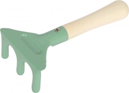 - Metalen gereedschap met stevige houten handgrepen in moderne kleuren.