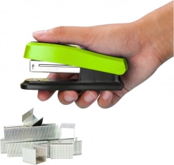 Deze nietmachine kan tot 30 vellen tegelijk nieten, waardoor het een onmisbaar hulpmiddel is voor het ordenen van documenten, notities, rapporten of schoolwerk. In de set zit ook een pak standaardnietjes, zodat je alles hebt wat je nodig hebt voor een eenvoudige organisatie van kantoorbenodigdheden. Het product is verpakt in een esthetische en beveiligde blisterverpakking die bescherming biedt.