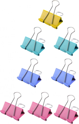 De set bevat 8 clips in pastelkleuren die niet alleen esthetisch opvallen, maar ook helpen bij het sorteren van documenten op kleur. De metalen constructie zorgt voor een lange levensduur en het ergonomische ontwerp maakt ze eenvoudig in gebruik.