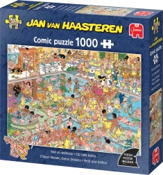 Beleef het plezier van het leggen van een unieke puzzel van de gerenommeerde auteur Jan van Haasteren, vol humor en kleur. Zijn werken staan bekend om hun karakteristieke stijl, waarin je onverwachte details vindt zoals een haaienvin en grappige personages.