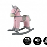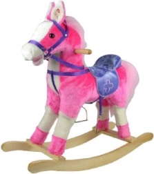 Deze pluchen schommelpony geeft kinderen een authentieke rijervaring. Bij het indrukken van het ene oortje hinnikt de pony, bij het andere hoor je het klapperen van hoefijzers en in beide gevallen beweegt de staart. De batterijen zijn veilig opgeborgen in een compartiment op de buik en een eenvoudige handleiding voor montage en het plaatsen van de batterijen is inbegrepen.