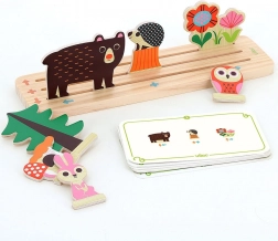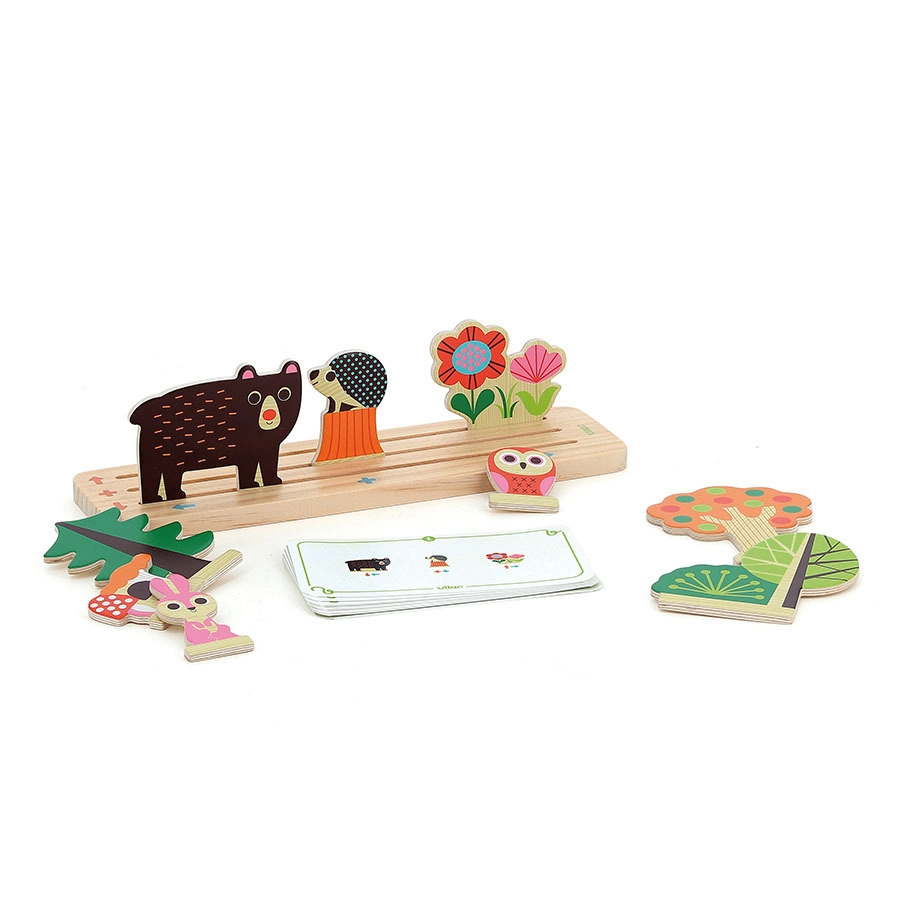 Houten logische puzzel met prachtige illustraties van Ingela P. Arrhenius, ideaal voor de ontwikkeling van ruimtelijke verbeelding, logisch denken en fijne motoriek bij kinderen. Met behulp van de houten stukjes en de speelkaarten leren kinderen ruimtelijke relaties herkennen, zoals links, rechts, boven en onder volgens de opdracht.