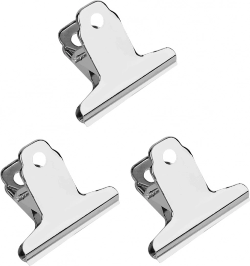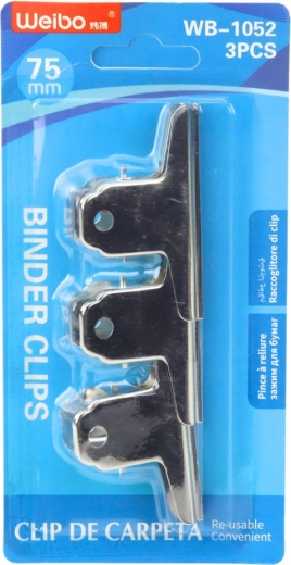 Sterke metalen kantoorclips met een breedte van 75 mm, ideaal voor het samenklemmen van omvangrijke documenten, technische tekeningen en andere kantoormaterialen. Dankzij de brede greep en krachtige klem geschikt voor zowel kantoor als thuis.