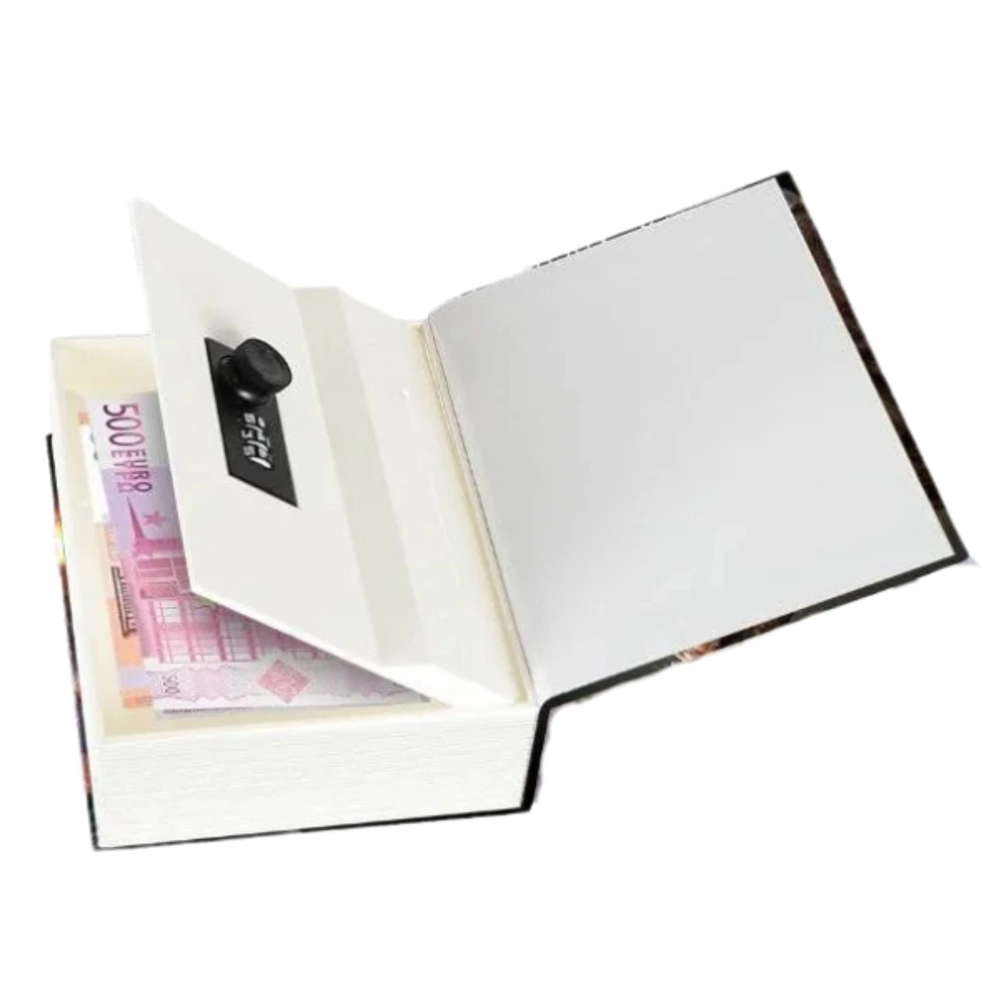Binnenin zit een metalen cassette met een cijferslot (standaardcode: 000) die spaargeld en waardevolle kleinigheden betrouwbaar beschermt. De spaarpot heeft een gleuf voor het inwerpen van munten en bankbiljetten zonder de hele cassette te hoeven openen.