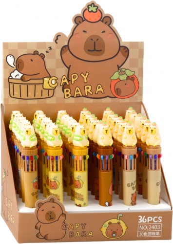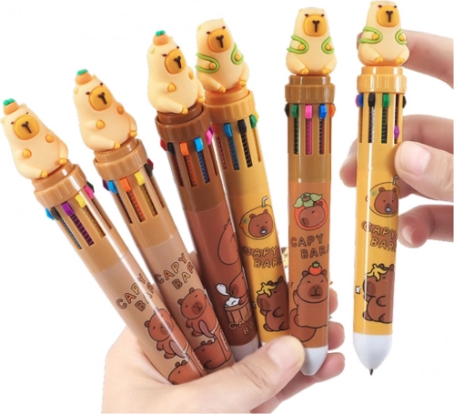 Meerkleurige pen met capibara-figuurtje: schattig design, 10 kleuren, ergonomisch, perfect voor dagelijks schrijven.