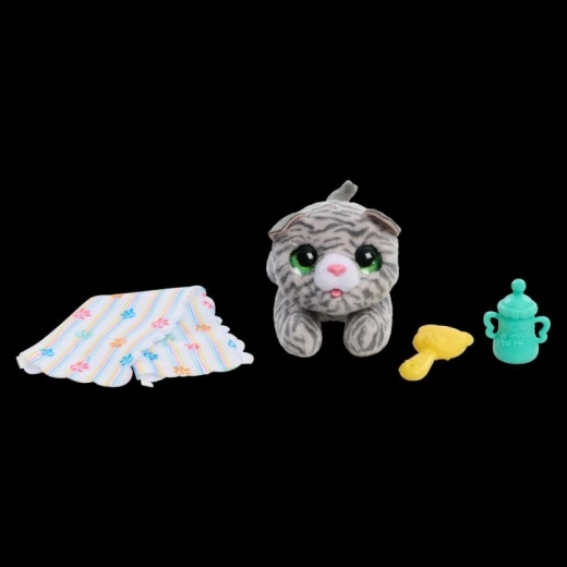 FurReal Pasgeboren Pluche Kitten is een schattig, interactief diertje waar je dol op zult zijn! Het verzorgen van hem is een plezier, voed hem met een flesje, kalmeer hem met een speen of wieg hem in je armen.