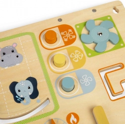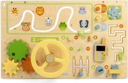 Dit activiteitenbord zit vol met diverse activiteiten, zoals knopjes, een doolhof, tandwielen, draai- en schuifelementen. Stimuleert de fijne motoriek en hand-oogcoördinatie, bevordert probleemoplossend vermogen en begrip van oorzaak en gevolg. Kinderen leren spelenderwijs!