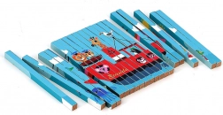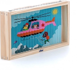 Ontdek de wereld vanuit verschillende hoeken met deze vierdimensionale houten puzzel. Dankzij het design van Ingela P. Arrhenius wachten je vier verschillende illustraties: auto, boot, helikopter en trein. Door de houten staafjes in de standaard te schuiven, verkent het kind niet alleen verborgen afbeeldingen, maar ontwikkelt het ook logisch denken en observatievaardigheden.