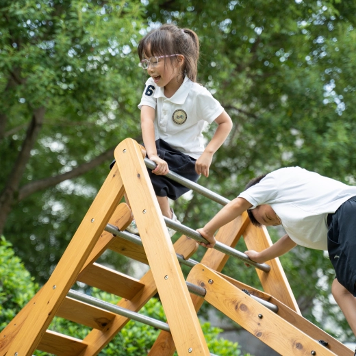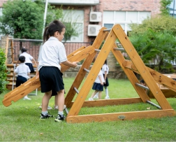 De set bevat drie klimladders, waaronder één met klimtouwen. Dankzij de verstelbare hoogte en de vrije opstelling van de twee zijladders kan de set worden aangepast aan de leeftijd en vaardigheden van het kind, en kunnen ze op verschillende niveaus worden bevestigd.