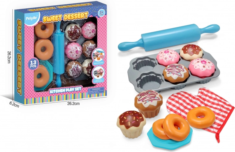 Deze set voor het bakken van koekjes bevat alles wat je nodig hebt om heerlijke koekjes te maken. Het omvat koekjes, een bakplaat, een deegroller, een bordje en handschoenen die elke stap van je bakproces vergemakkelijken.