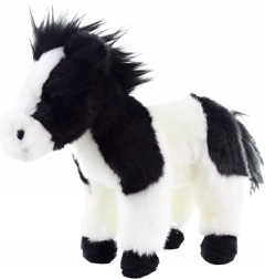Het pluchen paard heeft een realistisch zwart-wit patroon dat een authentieke uitstraling geeft. Zijn zachte manen en staart versterken het gevoel van realisme.