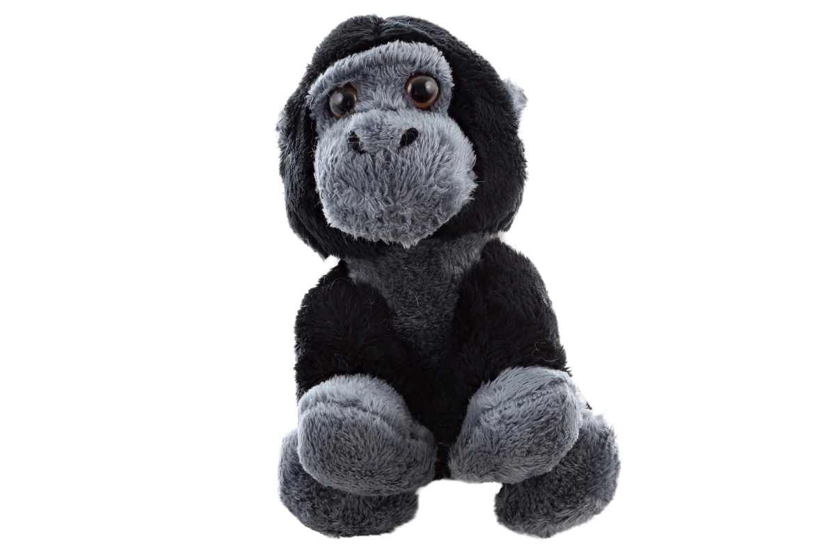 De pluchen gorilla is gemaakt van zacht en veilig materiaal, ideaal om te knuffelen en vast te houden.