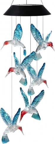 De zonne-windgongen in de vorm van kolibries zijn een unieke decoratie die elegantie en functionaliteit combineert. Met energie van het zonnepaneel is dit product milieuvriendelijk en heeft het geen extra stroombron nodig. Dankzij de ingebouwde schemersensor schakelt de verlichting automatisch in bij het invallen van de duisternis.