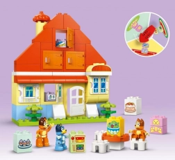 Ontdek de leuke bouwset voor kleuters: LEGO DUPLO Bluey Familiehuis met memoryspel. Het kleurrijke huisje biedt twee manieren van spelen – creatief bouwen en een interactief geheugenspel. Inclusief de figuren Bluey, Bingo en mama Chili, te openen ramen, een tafel met stoelen en een draaiknop voor het spel. De set stimuleert de communicatie, fantasie en fijne motoriek van kinderen vanaf 3 jaar.