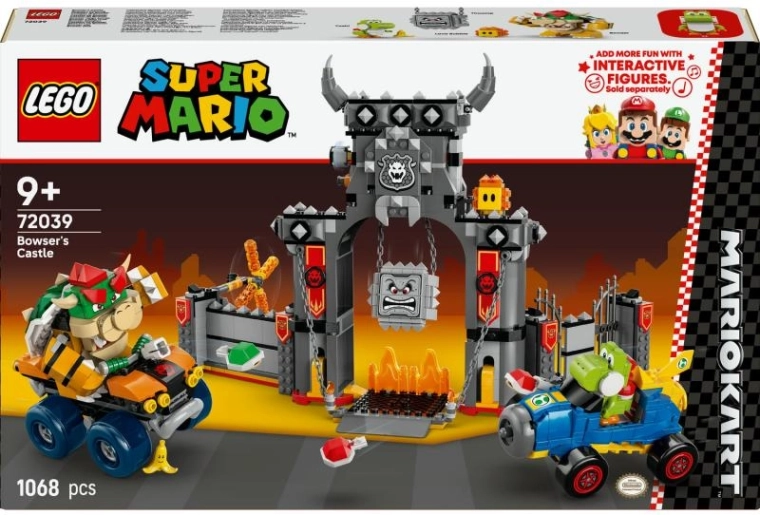 Rijd, drift en vuur schillen af met Bowsers quad en Yoshi’s Mach 8-kart, beuk door muren en ontwijk vallen. Door interactieve figuren LEGO Mario, LEGO Luigi of LEGO Peach toe te voegen (afzonderlijk verkrijgbaar) ontgrendel je gamegeluiden, reacties en beloningen zoals in de digitale game – ideaal voor solo- én groepsplezier.