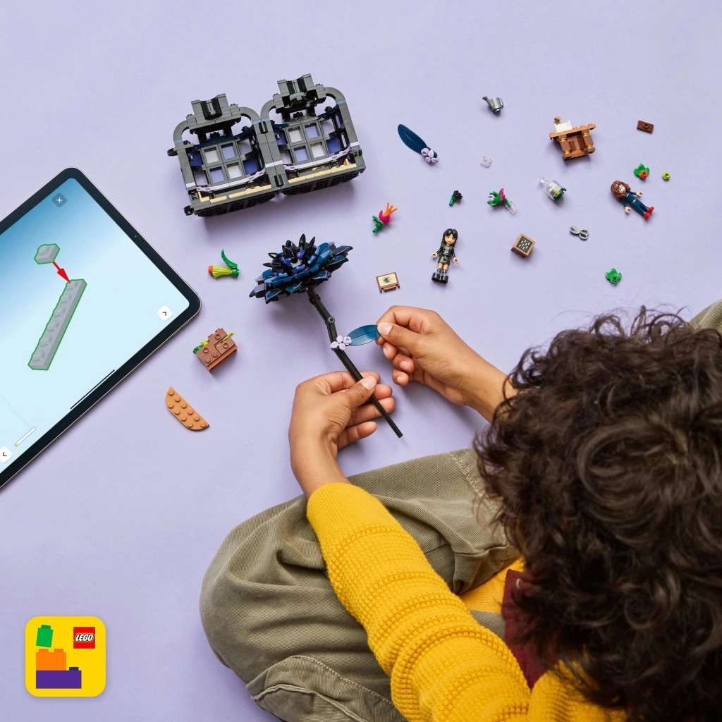 Twee minipoppetjes – Wednesday Addams en professor Marilyn Thornhill – prikkelen de verbeelding en voegen een spannende sfeer toe. Dankzij doordachte details, bewegende elementen en stylingmogelijkheden is de set perfect om te displayen én mee te spelen. Met de LEGO Builder-app kunnen oudere kinderen het model eenvoudig bouwen, in 3D draaien en de voortgang volgen.
