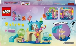 Ontdek een kleurrijk onderwateravontuur met Gabby, Meerminkat en Kwalletje in een leuke LEGO-set voor kinderen vanaf 4 jaar. Er is een glijbaan, een reusachtige bubbel om “te zwemmen”, een bewegend koraal met een verborgen schatkist en volop zeedieren, schelpen en planten. Ideaal voor jonge bouwers dankzij de startsteen en eenvoudige geïllustreerde instructies.