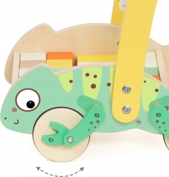 De houten loopwagen van het merk Classic World is uitgerust met wieltjes die de poten van de kameleon laten bewegen, waardoor het duwen nog leuker wordt. Ook inbegrepen zijn blokken in verschillende vormen en kleuren, die vrij stapelen mogelijk maken en de creativiteit en praktische vaardigheden bevorderen. Een kralenlabyrint op de hendel voegt nog een mogelijkheid toe voor interactieve spelletjes, die oog-hand-coördinatie en behendigheid ondersteunen.