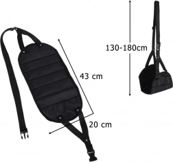 De voetensteun is uitgerust met een verstelbare riem met clip, waarmee je de lengte kunt aanpassen van 130-180 cm, wat een perfecte hoogte-instelling garandeert.