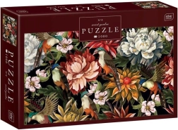 Puzzel Geheime tuin: Vogels tussen bloemen brengt een prachtige scène vol kleurrijke vogels en bloemen in je huis. Perfecte ontspanning voor natuurliefhebbers en ook een geweldig cadeau.