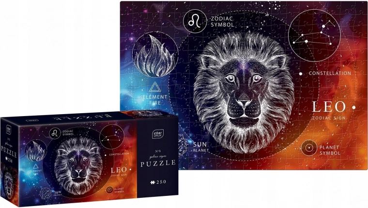 Betreed de wereld van de dierenriem met deze puzzel van 250 stukjes met het teken Leeuw. Deze puzzel is ideaal voor alle liefhebbers van astrologie en biedt:
