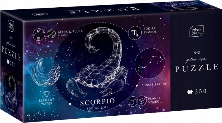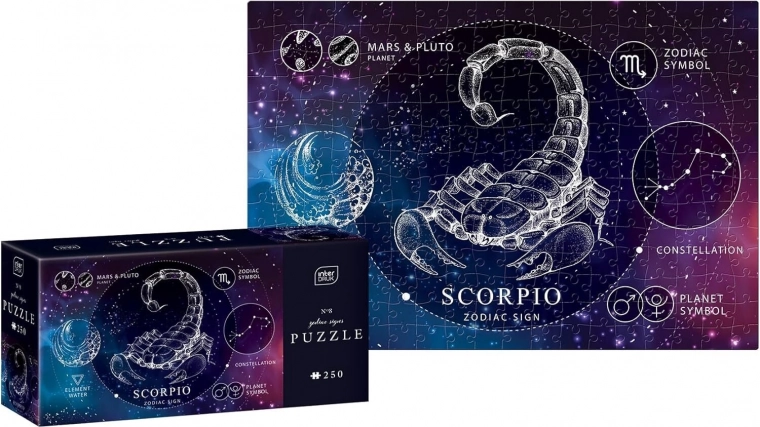 Ontdek de schoonheid en het mysterie van het dierenriemteken Schorpioen met onze puzzel van 250 stukjes. Deze puzzel is ideaal voor liefhebbers van astrologie en voor gevorderde puzzelaars.