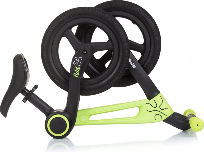 De loopfiets Chipolino Fold X groen helpt kinderen coördinatie te ontwikkelen en het evenwichtsgevoel te verbeteren dankzij het voortdurende contact van de voeten met de grond.