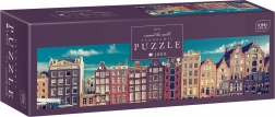 Panoramische puzzel Amsterdam neemt je mee naar het prachtige hart van Nederland. Geniet van het leggen van 1000 stukjes met dit schitterende uitzicht op Amsterdam.